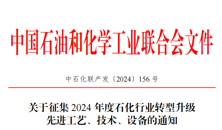 石化联合会关于征集2024年度石化行业转型升级先进工艺、技术、设备的通知